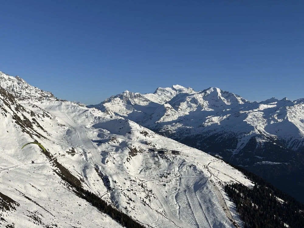 Dès les premiers instants en l’air, on comprend pourquoi le Valais est une référence en Suisse pour le parapente : la vue est grandiose, immersive, et change à chaque minute.